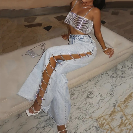 Sold outSide Stone Rhinestone Jeans